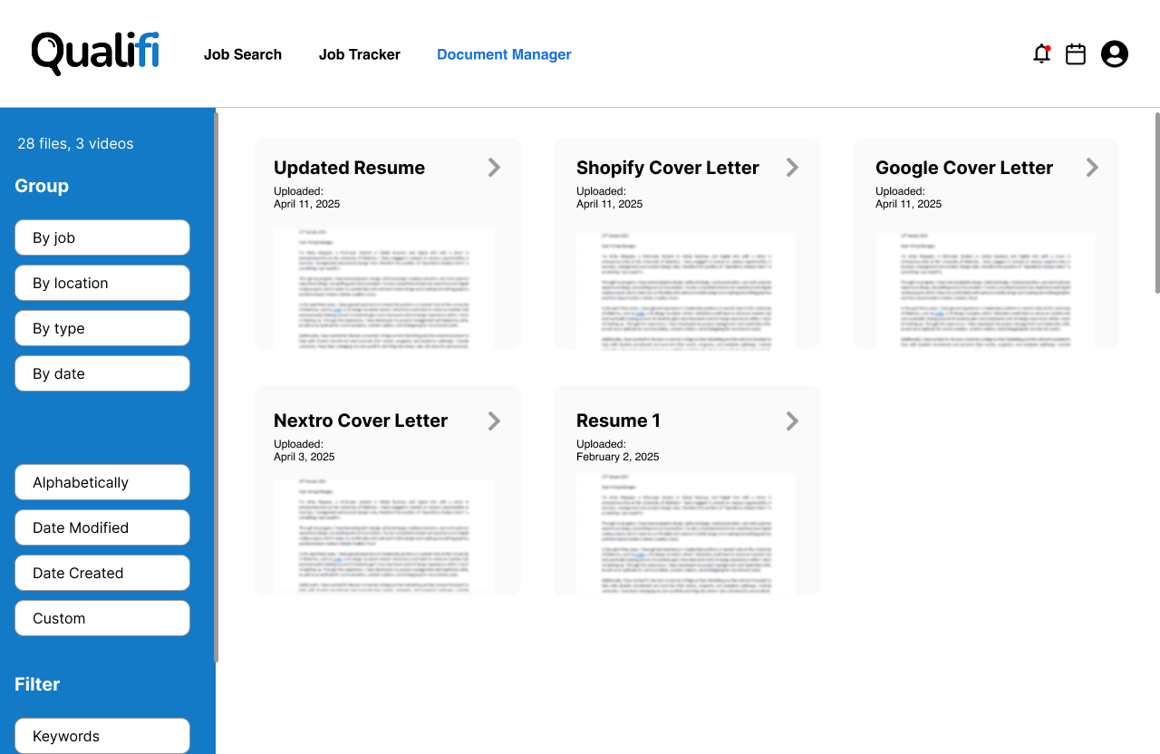 We've all been through battling countless links of your resume and cover letter that get lost in your cloud or device. Here Qualifi lets you maintain versions of your documents and application packages and tracks where you have previously used them.
