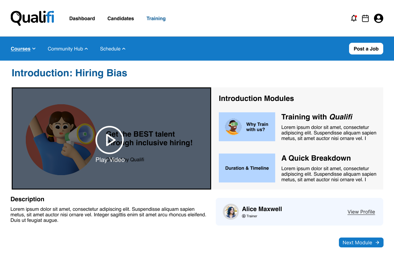 - Qualifi can partner up with professionals to provide training on interviewing/hiring practices and other tips for employees, such as resume suggestions. These can take the form of workshops or short videos.