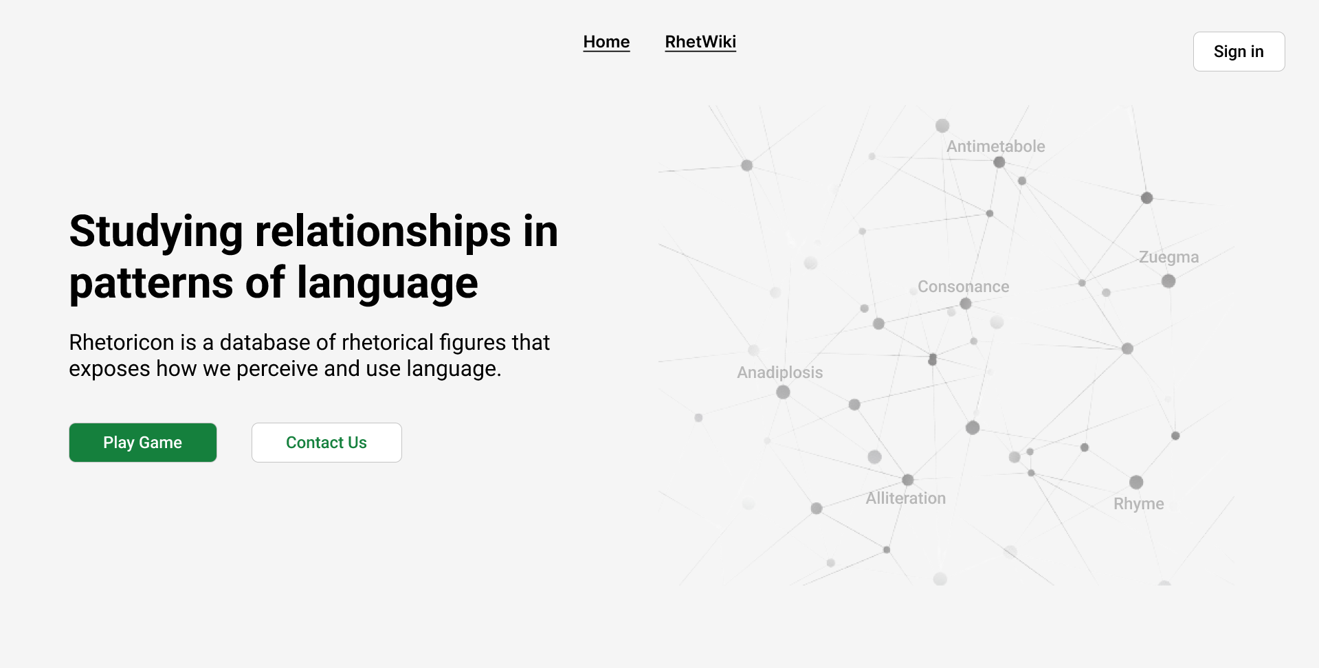 Rhetoricon is an evolving research project exploring how rhetorical figures shape communication, cognition, and linguistic expression. The initiative combines a vast database of annotated texts with an interactive gaming platform designed to make rhetorical structures accessible to both researchers and the public.