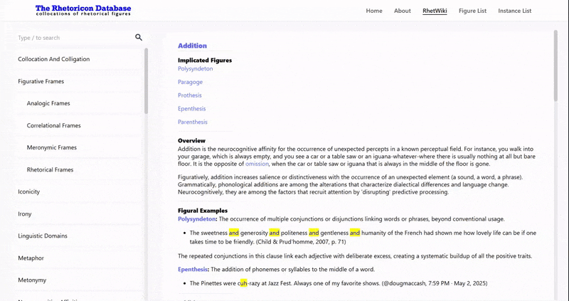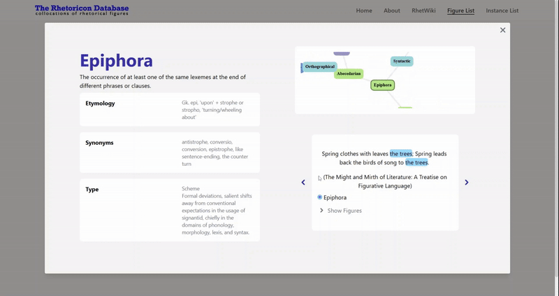 The “Figure of the Day” display component I designed was later integrated into both the RhetWiki and Figure List to present rhetorical figures.