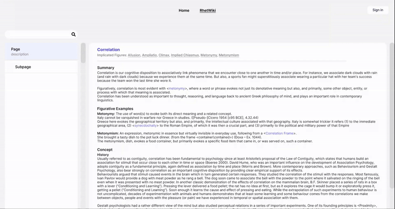 • A wiki system (RhetWiki) that allowed users to explore rhetorical figures through a navigable, well-structured hierarchy of information.